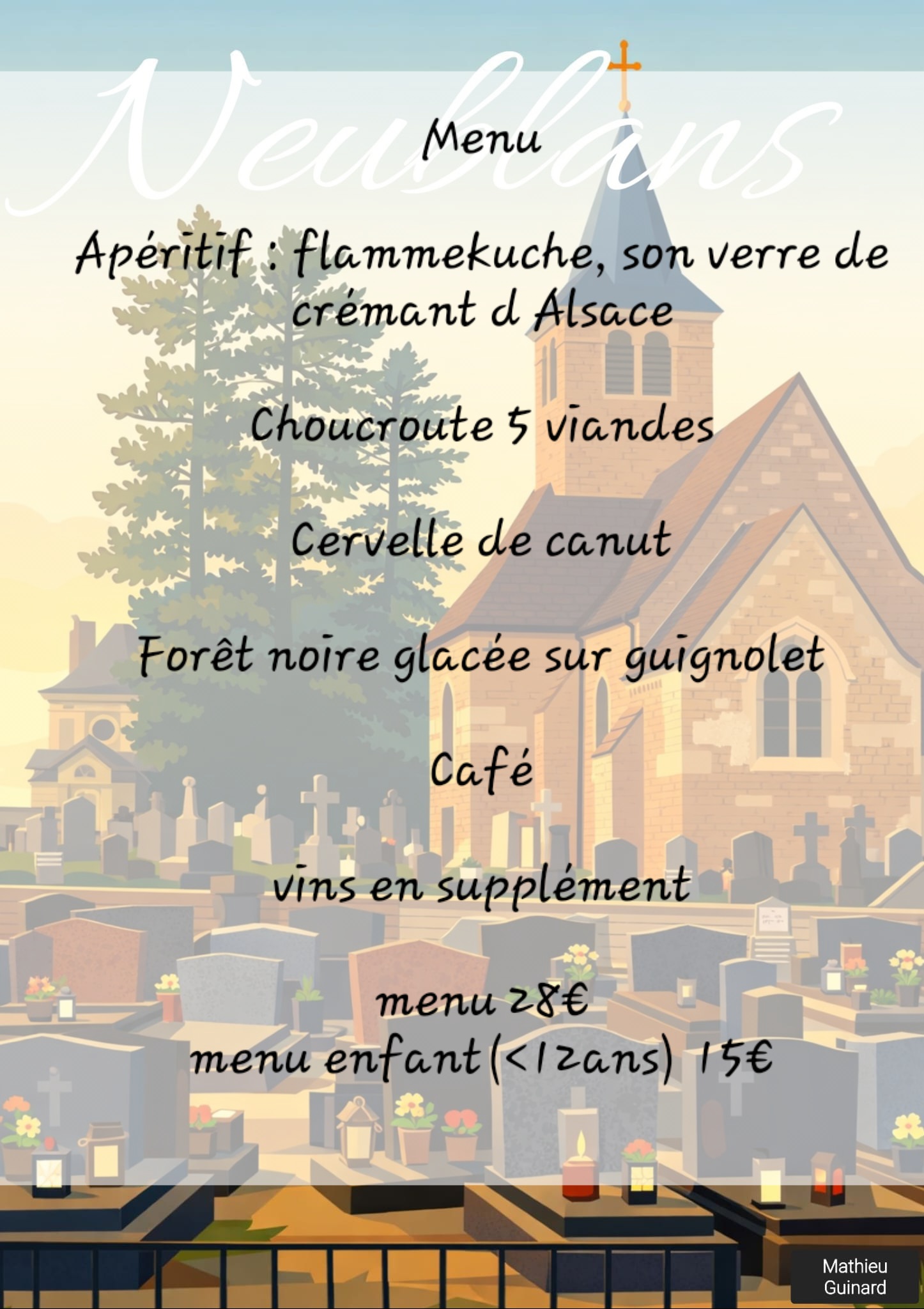 Réservation : 32 € par repas – auprès de Simone Puget – 2, rue des Ecoles – 39120 Neublans-Abergement, accompagné d’un chèque correspondant au total de la réservation (pas d’encaissement avant le 26 mars 2018). Réservez vos place le plus vite possible car la salle ne peut contenir que 122 convives